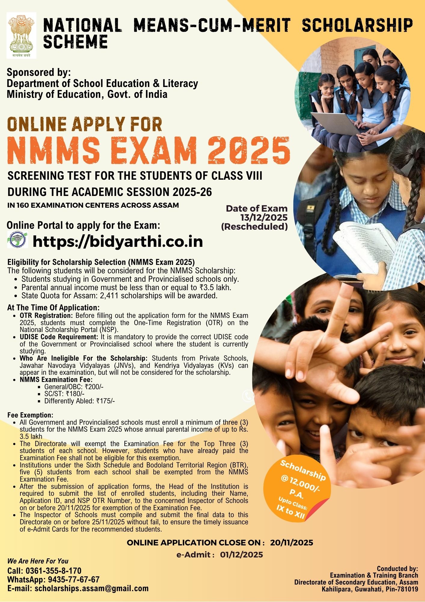 Directorate of Secondary Education, Assam National Means-cum-Merit Scholarship Examination (For the Students Studying in Class VIII)